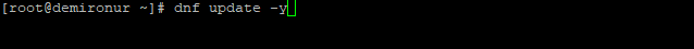 dnf update –y komutu ile paketleri güncelliyoruz