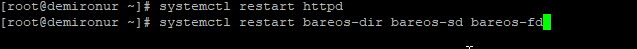 Httpd ve bareos servislerini restart yapıyoruz.