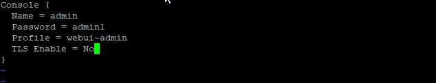 configure add console name=admin password=admin1 profile=webui-admin