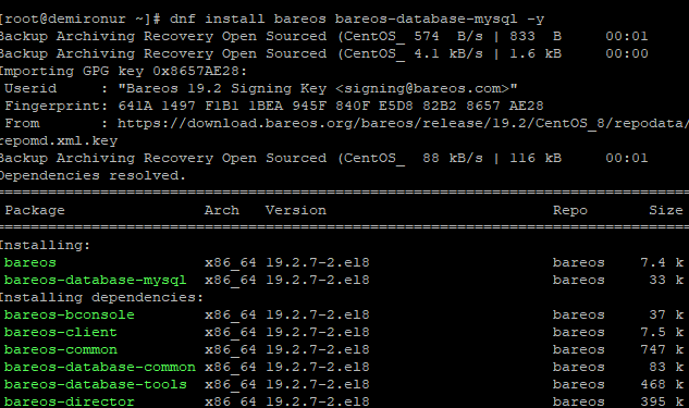 CentOS 8 ‘de varsayılan deposunda bareos repo mevcut değildir. Bareos deposunu resmi web sitelerinden indirmeniz gerekecek.
