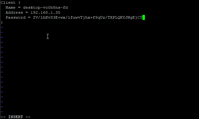 configure add client name=demironur-fd address=192.168.1.37 password=secret