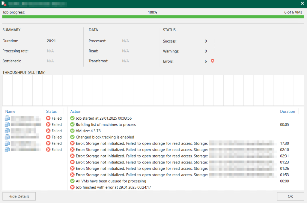 Storage not initialized. Failed to open storage for read access. Storage: [STORAGE_NAME/IP:/TEST_VeeamBackup/Replicas/TEST_REP_be06ce8a-54f6-4d3b-9190-60d23b5fa973_vm-12588/2025-01-26T021817.vbk].