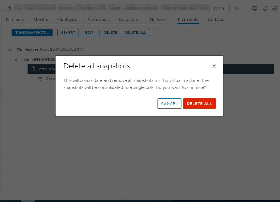 2-DR lokasyonunda bulunan sunucunun tüm snapshot temizlenir.