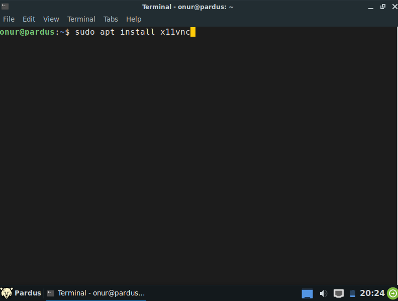 Terminalden aşağıdaki komut ile bağlanılmak istenen bilgisayara x11vnc paketini kuruyoruz: